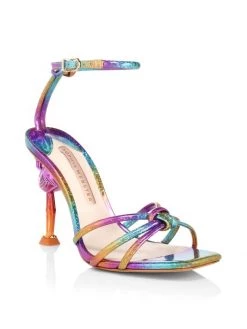 Sophia Webster Flo Flamingo-Heel Rainbow Metallic Leather Sandals
