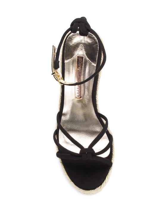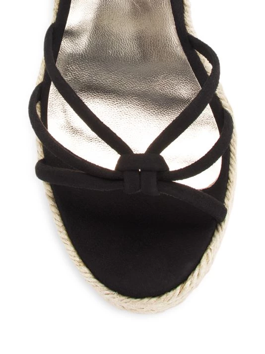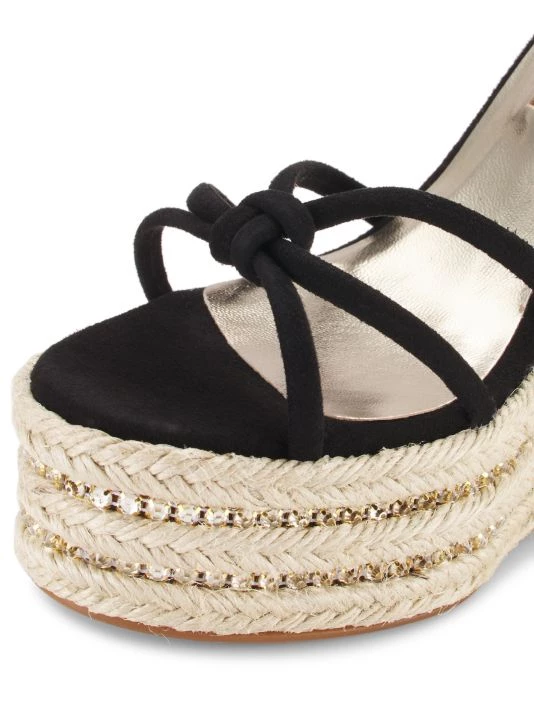These suede wedges feature a caged, knotted upper with a crystal-embellished jute midsole.
