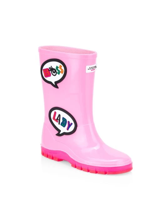These classic rain boots are elevated with “Boss Lady” word bubble patches.