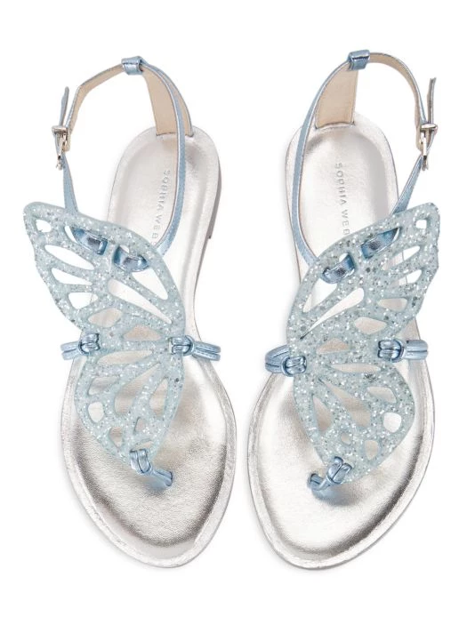 Designed with glittering butterflies across the vamp, these leather sandals have a playful `90s-inspired look.