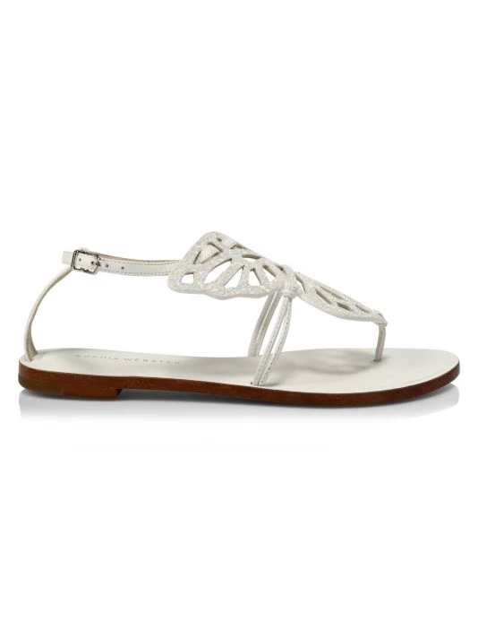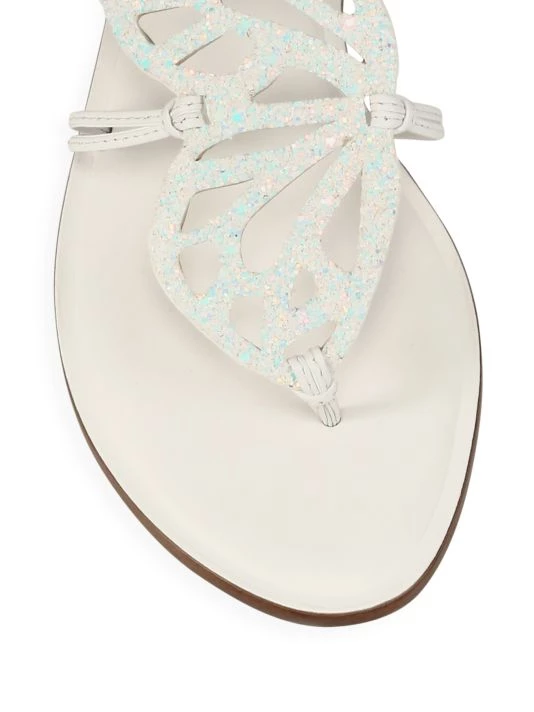 Shimmering glitter-embellished butterfly wings top these flat thongs.